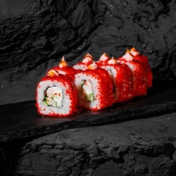 Состав: рис, снежный краб, творожный сыр, огурец, икра масаго, нори 8 шт. 250 гр .