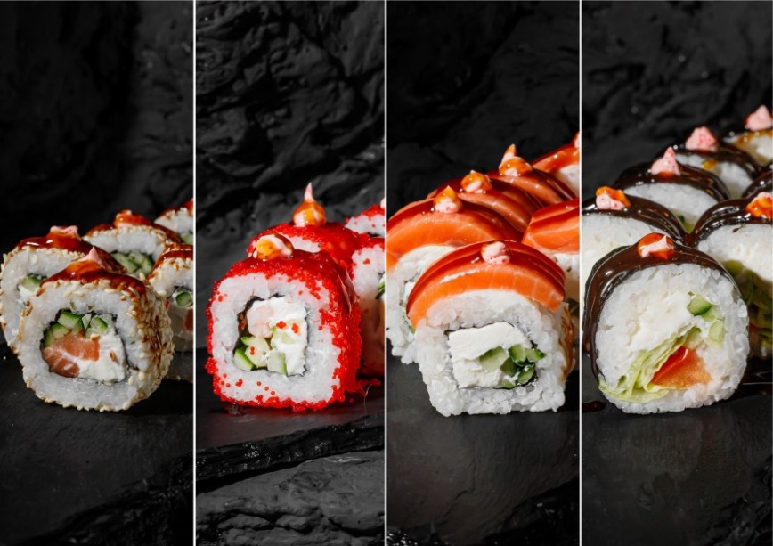 Императорский с тунцом, Императорский с крабом, Жареный пульс с креветкой, Жареный пульс с лососем,